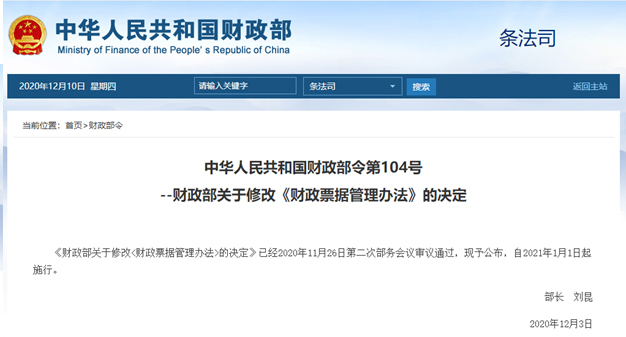 《決定》對(duì)《辦法》主要作了以下修改: 1、增加财政電子票據管化制理内容,明确财政電子票據和紙質票據具有同等法律效力,并對(duì)管理流程進(大行jìn)行規範。 2、根據财政電子票據管理改革實踐,拿吃取消非稅收入專用票據和定額票據。3、明确财政票據的統一管理,明多确定财政票據實行全國(guó)統一的式樣(yàng)、編碼規則和事算電子票據數據标準。4、深化“放管服”改革精神。删除了證明事(shì)項答老、防僞專用品和收取票據工本費等内容,增加了什訊财政部門及其工作人員應當為領用單位辦理領用證、領用票據提供便利大算的内容。5、根據監察法的有關規定,進(jìn)一步完善了法物兵律責任條款。