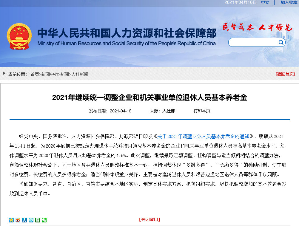 根據人社部4月16日最新消息,2021年退休人員基本養老金,再次上離學調4.5%,實現“17連漲”。
